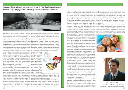 e shpirtit njerëzor – zelli, sensi i arritjes, saktësia – mund të shpalosen më mirë kur zemra e fëmijës edukohet edhe me dashuri, durim, kontakt të ngrohtë e pranimin pa kushte për atë që është, për rezultatin që jep. Kjo është sprova dhe njëkohësisht lavdia e prindit – ta dojë fëmijën e vet pa kushte. Kur kjo sprovë kalohet me sukses, ajo bëhet themeli i brezave të ekuilibruar në mendje e zemër, që dijen e dashurinë i kanë zhvilluar si dy krahë të barabartë. Prof. Peseschkian, në kontekstin e procesit të arsimimit dhe edukimit të fëmijës drejt arritjes së përsosurive të tij intelektuale e shpirtërore, këshillon: “Rritja e vetëdijshme do të thotë jo vetëm të dihet përmbajtja e rritjes, por të qënit i vetëdijshëm [si prind] për synimin e rritjes: pse, me ç’objektiv dhe për çfarë po e rris fëmijën tim? Për mua? Për veten e tij? Për njerëzimin?”