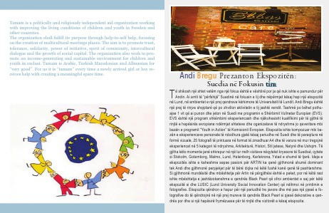 bazën e programit “Youth in Action” të Komisionit Evropian. Ekspozita ishte kompozuar mbi bazën e eksperiencave personale të ndodhura gjatë kësaj periudhe në Suedi dhe të paraqitura në