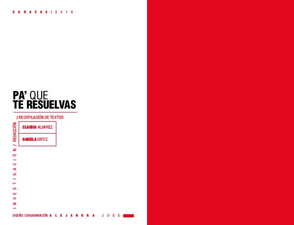 C A R A C A S / 2 0 1 8 PA’ QUE TE RESUELVAS / RECOPILACIÓN DE TEXTOS CLAUDIA ALVAREZ DANIELA ORTIZ DISEÑO / DIAGRAMACIÓN A L E J A N D R A J O S E