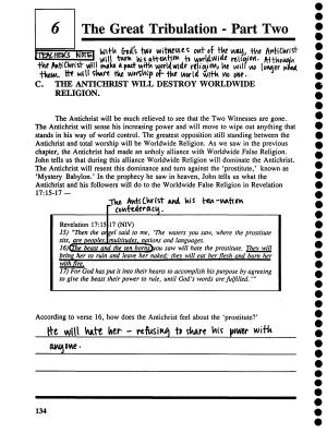 As we saw in the previous chapter , the Antichrist had made an unholy alliance with Worldwide False Religion . John tells us that during this alliance Worldwide Religion will dominate the Antichrist . The Antichrist will resent this dominance and turn against the `prostitute ,' known as `Mystery Babylon .' In the prophecy he saw in heaven , John tells us what the Antichrist and his followers will do to the Worldwide False Religion in Revelation 17:15-17 —
