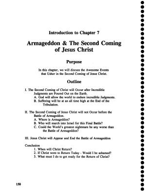 II . The Second Coming of Jesus Christ will not Occur before the Battle of Armageddon . A . Where is Armageddon ? B . Who will march into Israel for this Final Battle ? C . Could the World ' s greatest nightmare be any worse than the Battle of Armageddon ?