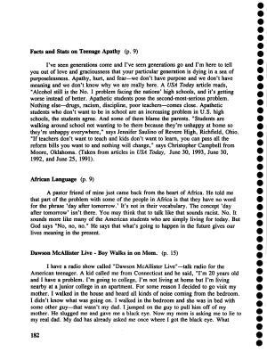 " Alcohol still is the No . 1 problem facing the nations ' high schools , and it ' s getting worse instead of better . Apathetic students pose the second-most-serious problem . Nothing else — drugs , racism , discipline , poor teachers — comes close . Apathetic students who don ' t want to be in school are an increasing problem in U . S . high schools , the students agree . And some of them blame the parents . " Students are walking around school not wanting to be there because they ' re unhappy at home so they ' re unhappy everywhere ," says Jennifer Saulino of Revere High , Richfield , Ohio " If teachers don ' t want to teach and kids don ' t want to learn , you can pass all the reform bills you want to and nothing will change ," says Christopher Campbell from Moore , Oklahoma . ( Taken from articles in USA Today , June 30 , 1993 , June 30 , 1992 , and June 25 , 1991 ).