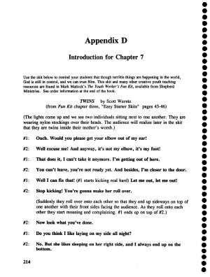 TWINS by Scott Werntz ( from Fun Kit chapter three , " Easy Starter Skits " pages 43-46 )