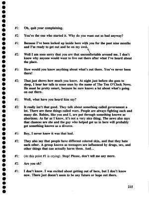 # 1 : ( At this point # 1 is crying ). Stop ! Please , don ' t tell me any more . # 2 : Are you ok ?