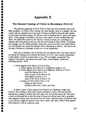 The glorious appearing of Jesus Christ is easily the most exciting event in all Bible prophecy . In Christ ' s first coming , He came humbly , born in a manger . He was cursed , spit on , abused even to the point of being crucified by those He had created . At our Lord ' s Second Coming , He will not come in humility but in " power and great glory ." This passage of Scripture may have more impact on your students than any other . We added this section to the Teacher ' s Guide to assist you in teaching your students about the glorious and powerful Second Coming of Jesus Christ . In teaching this passage , you are telling teenagers things they may never have even heard before . It is crucial that you master this passage before attempting to teach it . Be sure to use the tape of Dawson ' s teachings to help you in your preparation .
