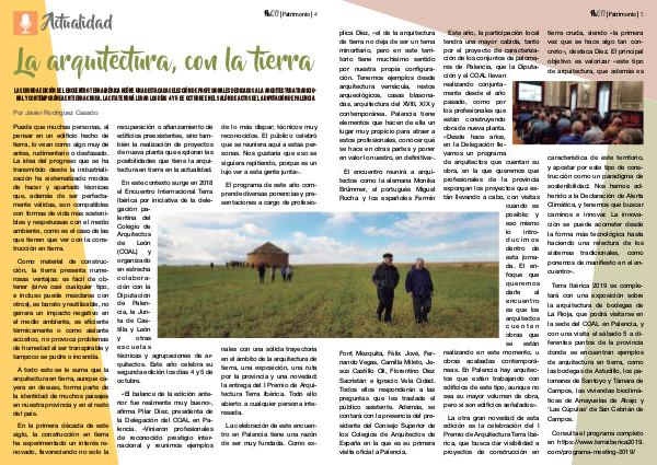 nal y contemporánea en tierra cruda. La cita tendrá lugar los días 4 y 5 de octubre en el Salón de Actos de la Diputación de Palencia