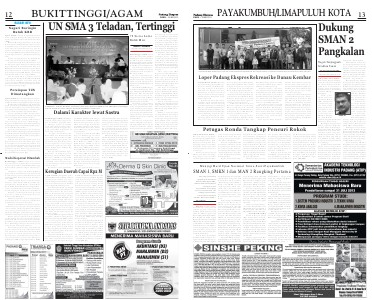 Bukittinggi, Padek— Hasil Ujian Nasional( UN) Tingkat SLTA Tahun Ajaran 2012 / 2013 ini, SMA Negeri 3 Teladan, meraih peringkat pertama tingkat Kota Bukittinggi dengan nilai rata-tata IPA 44, 72 dan IPS 44,49.