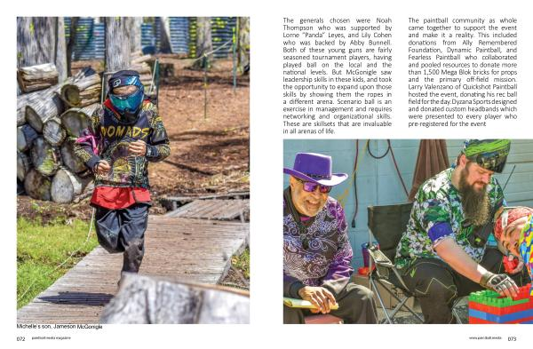 The paintball community as whole came together to support the event and make it a reality . This included donations from Ally Remembered Foundation , Dynamic Paintball , and Fearless Paintball who collaborated and pooled resources to donate more than 1,500 Mega Blok bricks for props and the primary off-field mission . Larry Valenzano of Quickshot Paintball hosted the event , donating his rec ball field for the day . Dyzana Sports designed and donated custom headbands which were presented to every player who pre-registered for the event