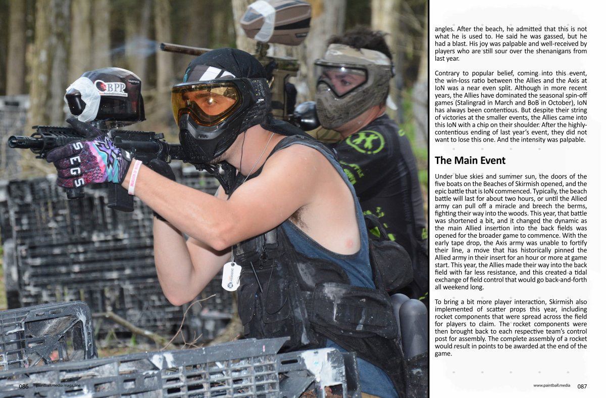 To bring a bit more player interaction, Skirmish also implemented of scatter props this year, including rocket components that were spread across the field for players to claim. The rocket components were then brought back to each respective team’ s control post for assembly. The complete assembly of a rocket would result in points to be awarded at the end of the game. www. paintball. media