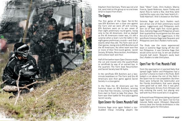 The finals saw the more experienced team in Extreme Rage facing off the redhot Philippines . It was Extreme Rage that would come out on top , to win yet another mounds ball event . Requiem easily beat Doc ’ s Raiders to take third place .