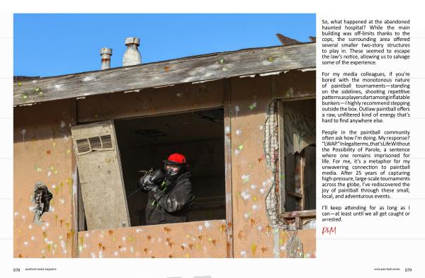 People in the paintball community often ask how I ’ m doing . My response ? “ LWAP .” In legal terms , that ’ s Life Without the Possibility of Parole , a sentence where one remains imprisoned for life . For me , it ’ s a metaphor for my unwavering connection to paintball media . After 25 years of capturing high-pressure , large-scale tournaments across the globe , I ’ ve rediscovered the joy of paintball through these small , local , and adventurous events .