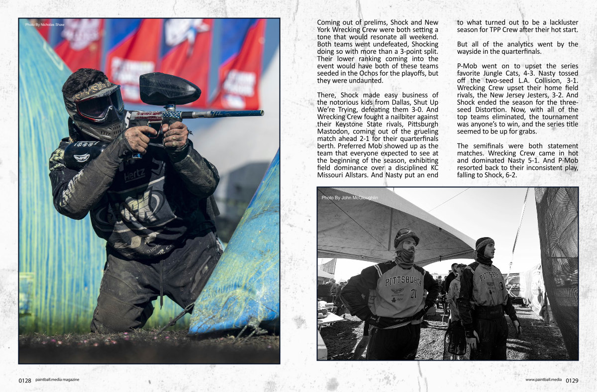 P-Mob went on to upset the series favorite Jungle Cats, 4-3. Nasty tossed off the two-seed L. A. Collision, 3-1. Wrecking Crew upset their home field rivals, the New Jersey Jesters, 3-2. And Shock ended the season for the threeseed Distortion. Now, with all of the top teams eliminated, the tournament was anyone’ s to win, and the series title seemed to be up for grabs.