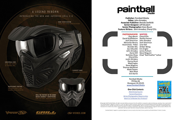 Publisher: Paintball. Media Editor: John Amodea Associate Publisher: Brenda Seefeldt Senior Designer: Jeff Deubert Senior Photographer: Gary Baum Feature Writers: John Amodea, Cheryl Ellis