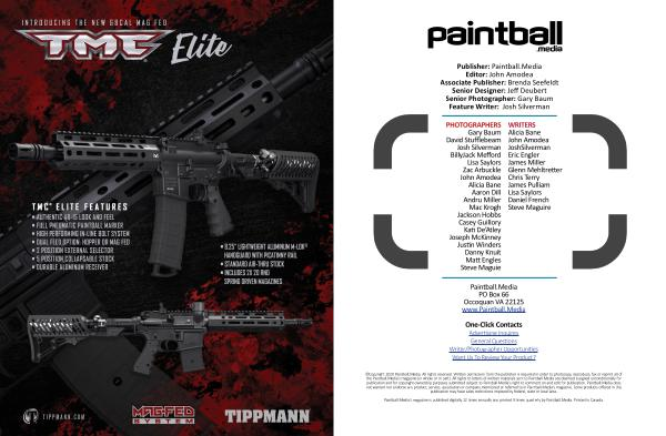 Publisher : Paintball . Media Editor : John Amodea Associate Publisher : Brenda Seefeldt Senior Designer : Jeff Deubert Senior Photographer : Gary Baum Feature Writer : Josh Silverman