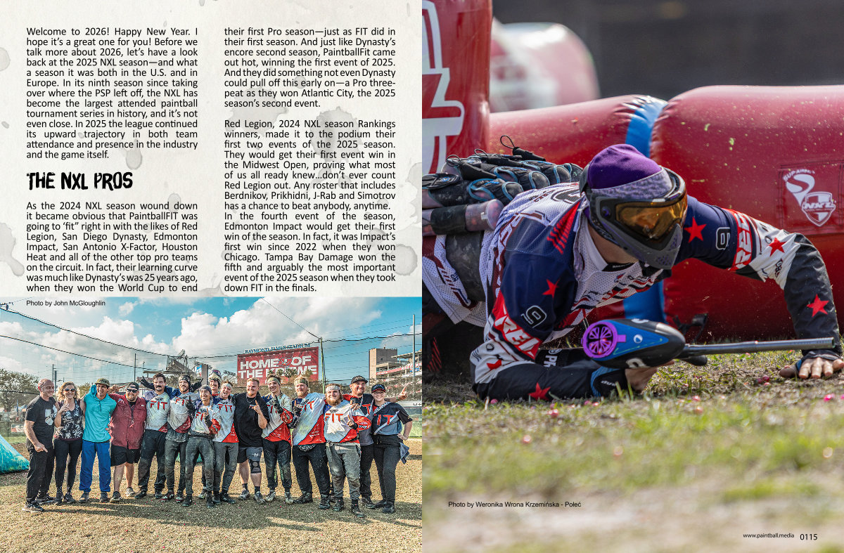 Welcome to 2026! Happy New Year. I hope it’ s a great one for you! Before we talk more about 2026, let’ s have a look back at the 2025 NXL season— and what a season it was both in the U. S. and in Europe. In its ninth season since taking over where the PSP left off, the NXL has become the largest attended paintball tournament series in history, and it’ s not even close. In 2025 the league continued its upward trajectory in both team attendance and presence in the industry and the game itself.