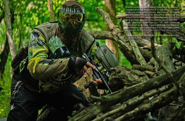 In a phone interview , Kristopher Burge AKA “ Sh ! tHouse ” revisited what had happened at Final Battle . “ Our Team Allies side was England , Russia , and Mexico . They held the 2 northern slapsticks for 95 % of the time while the slapstick in the Grinder went to the Axis side 80 % of the time and that was Germany , Canada , China , and USA .” Dave Massey owner / operator of Hell Survivors announced via mic that it was a close fight for the most part between China and England , but the latter pulled off the win for the first time in Mad Frog Militia history .