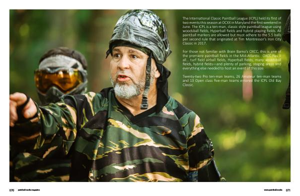 The International Classic Paintball League ( ICPL ) held its first of two events this season at OCXX in Maryland the first weekend in June . The ICPL is a ten-man , classic style paintball league using woodsball fields , Hyperball fields and hybrid playing fields . All paintball markers are allowed but must adhere to the 5.5 balls per second rule that originated at Tim Montressor ’ s Iron City Classic in 2017 .
