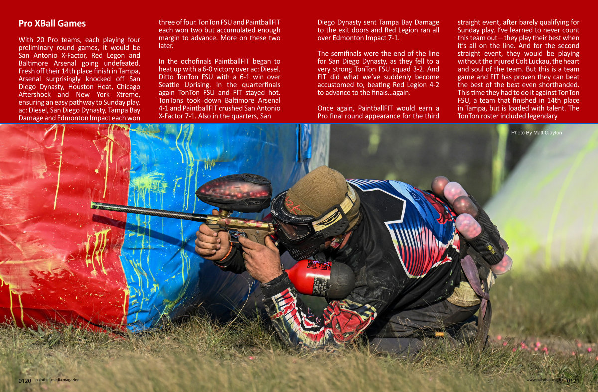 Once again, PaintballFIT would earn a Pro final round appearance for the third straight event, after barely qualifying for Sunday play. I’ ve learned to never count this team out— they play their best when it’ s all on the line. And for the second straight event, they would be playing without the injured Colt Luckau, the heart and soul of the team. But this is a team game and FIT has proven they can beat the best of the best even shorthanded. This time they had to do it against TonTon FSU, a team that finished in 14th place in Tampa, but is loaded with talent. The TonTon roster included legendary