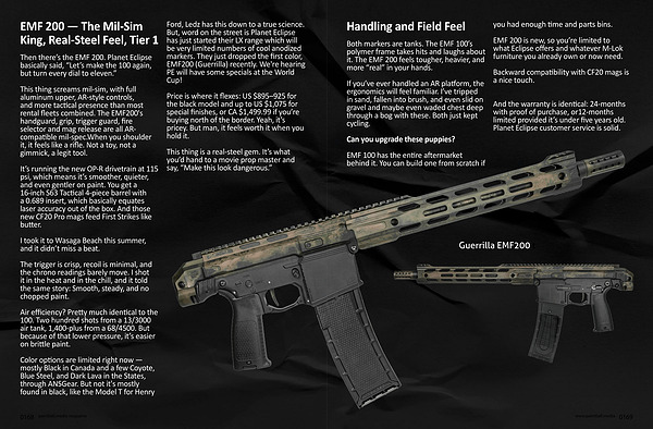 Both markers are tanks. The EMF 100’ s polymer frame takes hits and laughs about it. The EMF 200 feels tougher, heavier, and more“ real” in your hands.