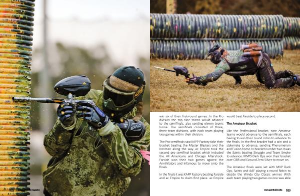 The Pro semifinals saw KAPP Factory take their bracket beating the Master Blasters and the Ironmen along the way . ac Empire took the second pro semifinal bracket which included the All Americans and Chicago Aftershock . Farside won their two games against the Annihilators and Infamous to move onto the finals .