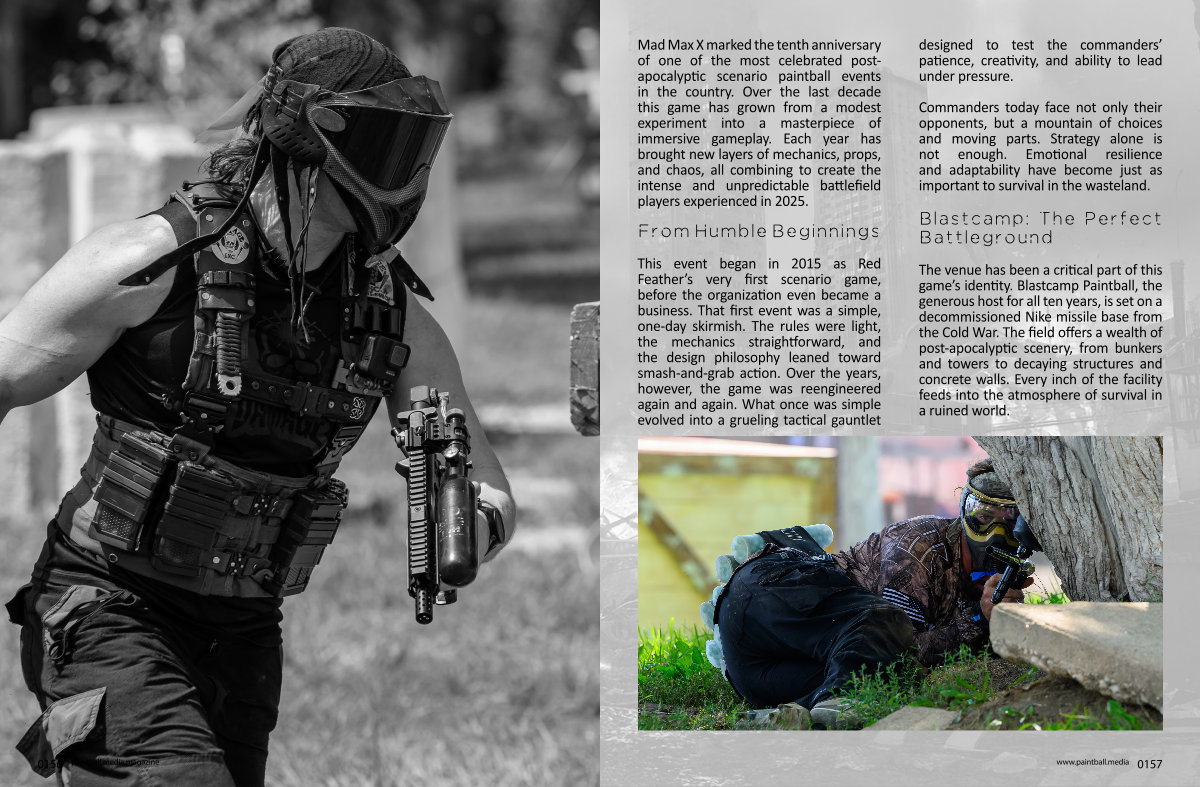 The venue has been a critical part of this game’ s identity. Blastcamp Paintball, the generous host for all ten years, is set on a decommissioned Nike missile base from the Cold War. The field offers a wealth of post-apocalyptic scenery, from bunkers and towers to decaying structures and concrete walls. Every inch of the facility feeds into the atmosphere of survival in a ruined world. www. paintball. media