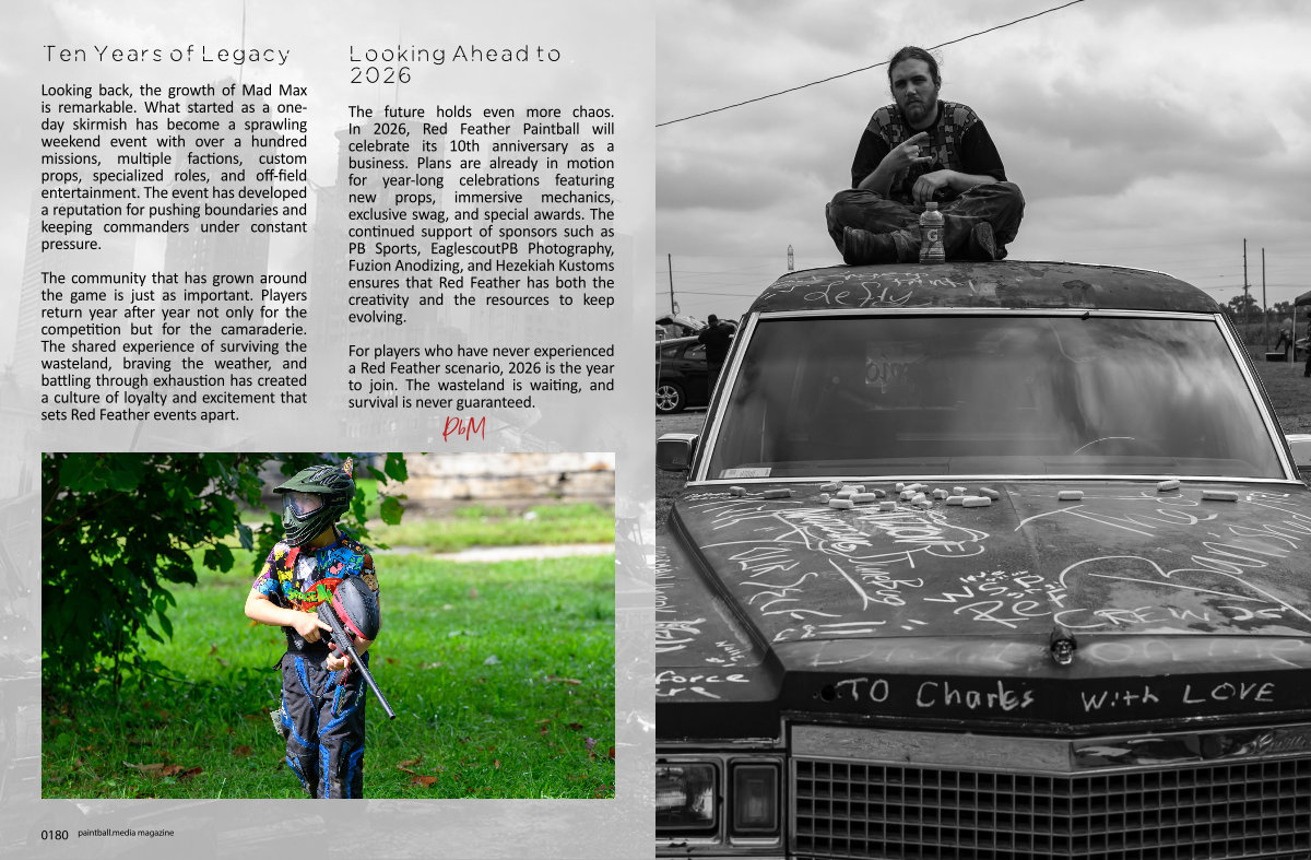 The future holds even more chaos. In 2026, Red Feather Paintball will celebrate its 10th anniversary as a business. Plans are already in motion for year-long celebrations featuring new props, immersive mechanics, exclusive swag, and special awards. The continued support of sponsors such as PB Sports, EaglescoutPB Photography, Fuzion Anodizing, and Hezekiah Kustoms ensures that Red Feather has both the creativity and the resources to keep evolving.