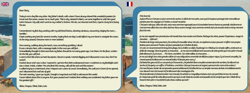 torche et j’ai aperçu un coffre. A l’intérieur, une lettre. Celui qui trouvera cet argent, parcourra les mers et les océans !