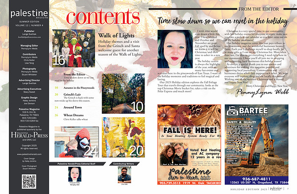 Palestine Magazine 519 N. Elm St. Palestine, TX 75801 903-729-0281 903-720-0284 fax