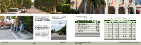 • y“ Like-for-Like” fiber / coaxial systems( FTTN) were considered in this estimate for the undergrounding of cable television facilities. Comcast has stated that they will install an upgraded fiber optic network concurrently with the Town’ s undergrounding program only if the Town funds those upgrade costs. The additional cost of this fiber optic network upgrade( both Comcast cabling and equipment required upgrades and Town conduit required upgrades) has not been considered in this master plan’ s opinion of probable cost. This opinion further considers the use of a single 3-inch conduit for main Comcast trunk line coaxial cables rather than their typical standard of two 2-inch conduits for this purpose. Comcast stressed that this modification of their design standard will only be applicable to the Town of Palm Beach conversion program. y • This opinion of cost only considers the minimum number and size of conduits required to implement the overhead to underground utility conversion. Spare conduits have not been included in this opinion of probable cost.