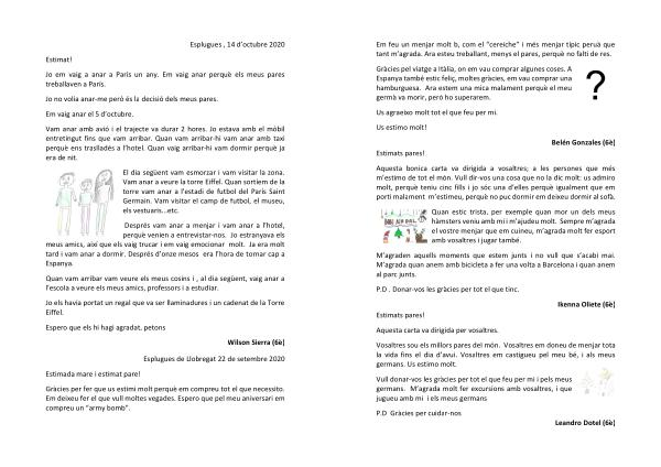Aquesta bonica carta va dirigida a vosaltres ; a les persones que més m ’ estimo de tot el món . Vull dir-vos una cosa que no la dic molt : us admiro molt , perquè teniu cinc fills i jo sóc una d ’ elles perquè igualment que em porti malament m ’ estimeu , perquè no puc dormir em deixeu dormir al sofà .