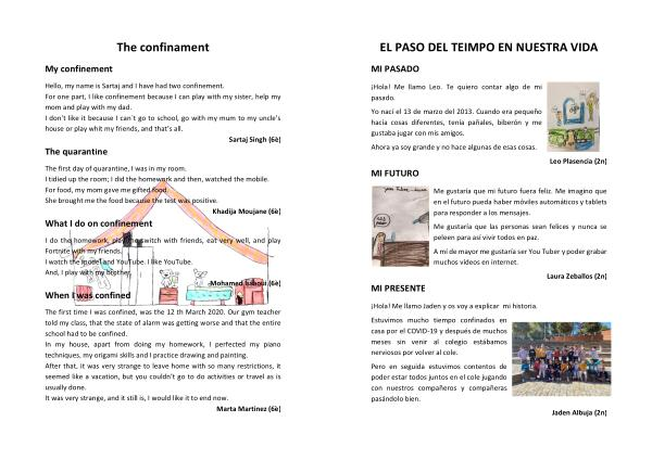 The first time I was confined , was the 12 th March 2020 . Our gym teacher told my class , that the state of alarm was getting worse and that the entire school had to be confined . In my house , apart from doing my homework , I perfected my piano techniques , my origami skills and I practice drawing and painting . After that , it was very strange to leave home with so many restrictions , it seemed like a vacation , but you couldn ’ t go to do activities or travel as is usually done . It was very strange , and it still is , I would like it to end now .