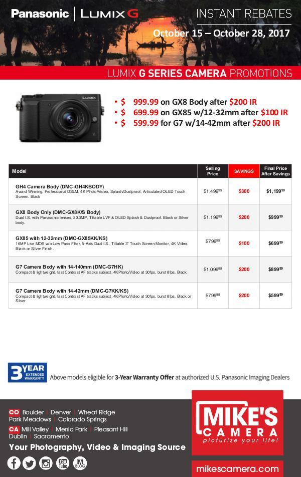 • $ 599.99 for G7 w/14-42mm after $200 IR