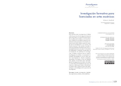 Penilla, W.( 2012). Investigación formativa para licenciados en artes escénicas. Paradigmas, 4, 125-139.