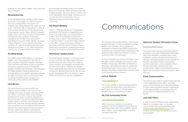 The Crofton House Winter Bazaar is a cherished tradition , with roots going back to the early ‘ 40 when proceeds raised were donated to the Red Cross and Save the Children Funds , among others . The event is organized by the CHS Parents ’ Auxiliary and takes place annually in late November . The Winter Bazaar is made possible by the volunteer efforts of our parents , guardians , students and staff , and aims to build community by inviting our family and friends to join in support of a community partner , most recently KidSafe . accommodate the growing size of our student body and community , and to showcase the CHS musical program . The Carol Service , held on the last Friday before Winter Break , reconnects us to our past and looks to the future , and is a celebration enjoyed by the whole school community .