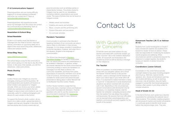 Students from Junior Kindergarten to Grade 7 have a homeroom teacher and students from Grade 8 to Grade 12 have an advisor . These roles are responsible for monitoring the student ’ s overall progress and wellbeing . When circumstances warrant a perspective beyond the classroom or subject teacher , the student ’ s homeroom teacher or advisor should be contacted .
