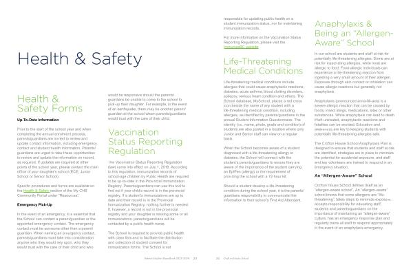Crofton House School defines itself as an “ allergen-aware school ”. An “ allergen-aware ” school knows that some allergens are “ lifethreatening ”, takes steps to minimize exposure , accepts responsibility for educating staff , students and parents / guardians on the importance of maintaining an “ allergen-aware ” culture , has an emergency response plan and regularly trains all staff to respond appropriately in the event of an anaphylaxis emergency .