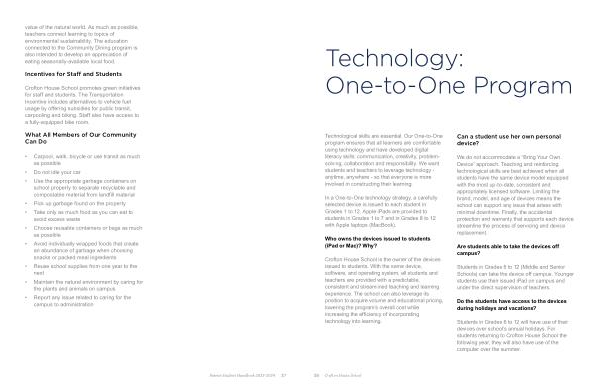 Crofton House School promotes green initiatives for staff and students . The Transportation Incentive includes alternatives to vehicle fuel usage by offering subsidies for public transit , carpooling and biking . Staff also have access to a fully-equipped bike room .