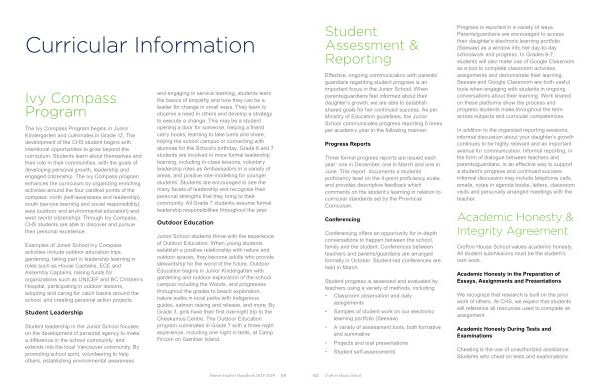 Effective , ongoing communication with parents / guardians regarding student progress is an important focus in the Junior School . When parents / guardians feel informed about their daughter ’ s growth , we are able to establish shared goals for her continued success . As per Ministry of Education guidelines , the Junior School communicates progress reporting 5 times per academic year in the following manner :