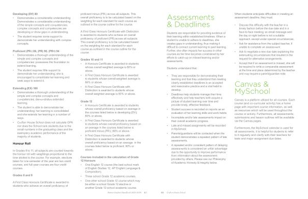• A Honours Certificate is awarded to students whose overall proficiency based on average in the courses listed below is developing ( DV ); 80 % or above .
