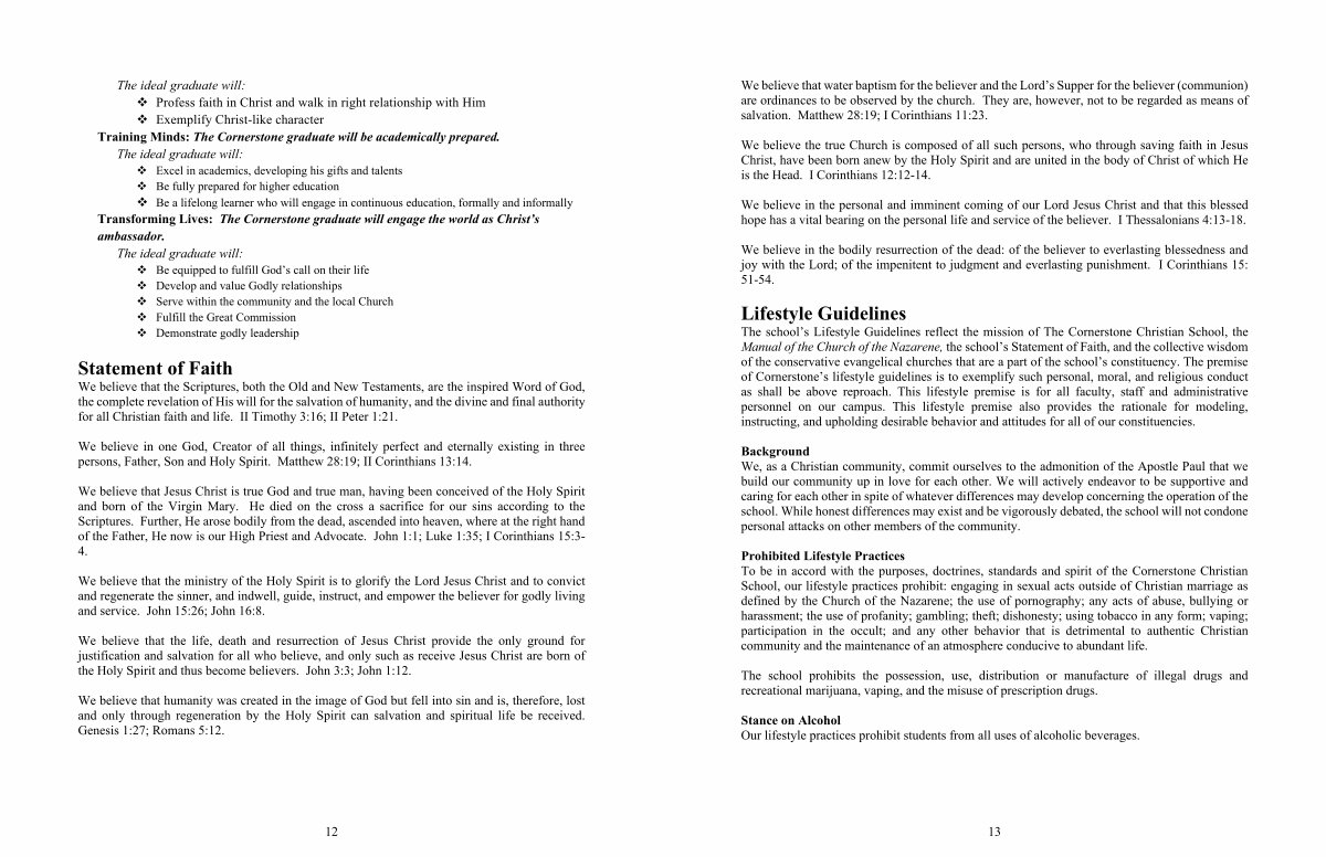 � Be a lifelong learner who will engage in continuous education, formally and informally Transforming Lives: The Cornerstone graduate will engage the world as Christ’ s ambassador.