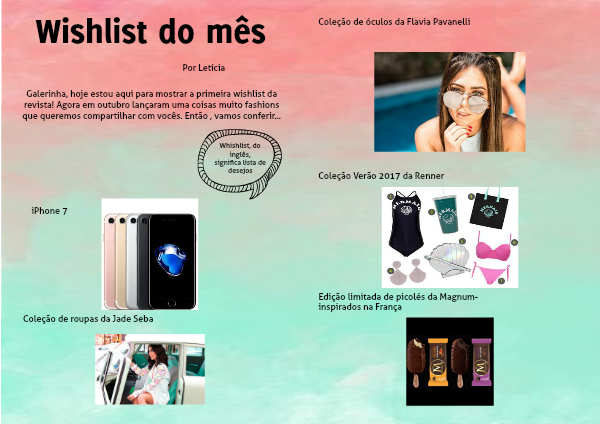 Galerinha, hoje estou aqui para mostrar a primeira wishlist da revista! Agora em outubro lançaram uma coisas muito fashions que queremos compartilhar com vocês. Então , vamos conferir...