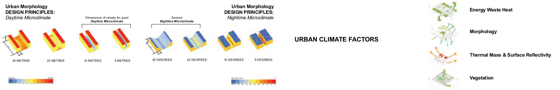 Energy Waste Heat URBAN CLIMATE FACTORS Morphology Thermal Mass & Surface Reflectivity Vegetation