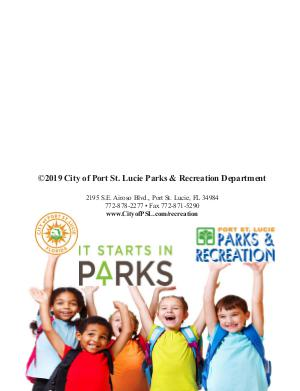 ©2019 City of Port St. Lucie Parks & Recreation Department 2195 S.E. Airoso Blvd., Port St. Lucie, FL 34984 772-878-2277 • Fax 772-871-5290 www.CityofPSL.com/recreation