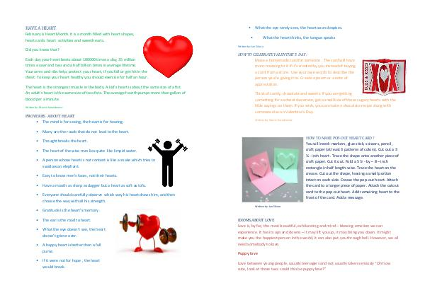 HAVE A HEART February is Heart Month. It is a month filled with heart shapes, heart cards heart activities and sweethearts.