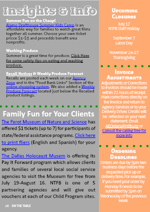 The Dallas Holocaust Musem is offering its Pay It Forward program which allows clients and families of several local social service agencies to visit the Museum for free from July 19-August 16. NTFB is one of 5 partnering agencies and will give out vouchers at each of our Child Program sites.