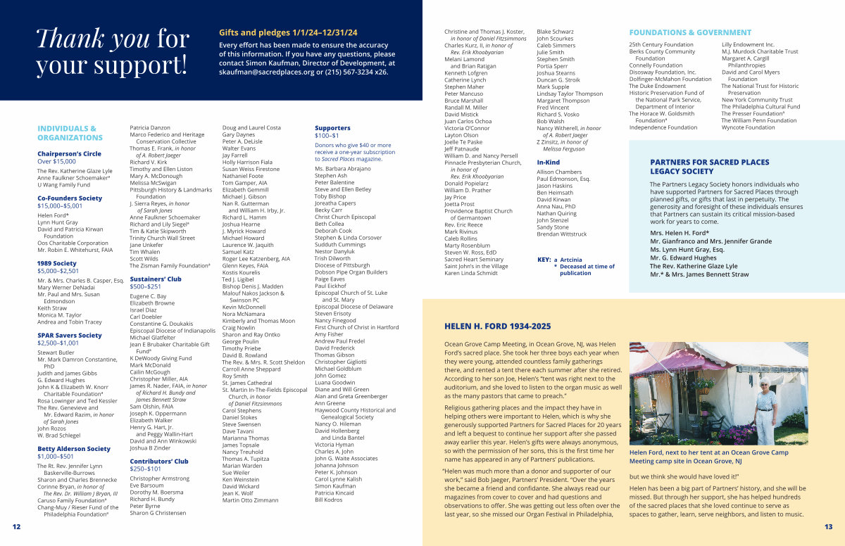 Donors who give $ 40 or more receive a one-year subscription to Sacred Places magazine.