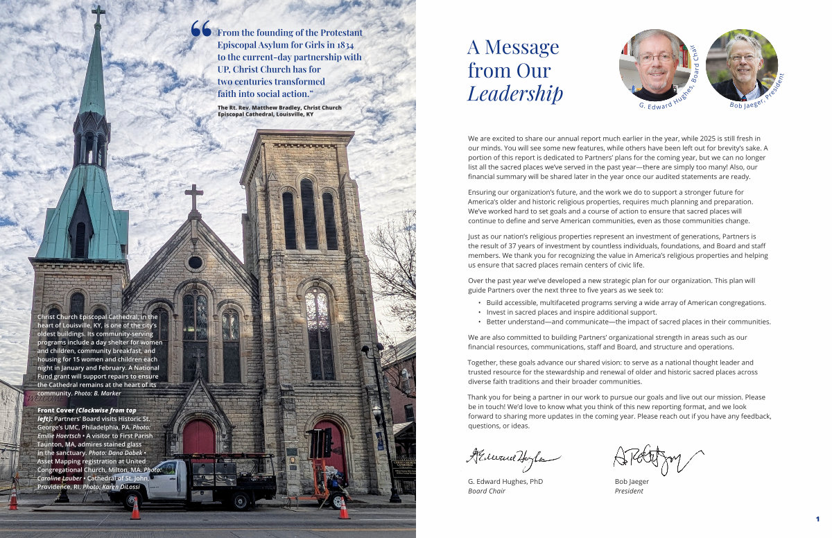 Front Cover( Clockwise from top left): Partners’ Board visits Historic St. George’ s UMC, Philadelphia, PA. Photo: Emilie Haertsch • A visitor to First Parish Taunton, MA, admires stained glass in the sanctuary. Photo: Dana Dabek • Asset Mapping registration at United Congregational Church, Milton, MA. Photo: Caroline Lauber • Cathedral of St. John, Providence, RI. Photo: Karen DiLossi