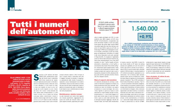 di ricarica, secondo i dati EAFO, il nostro Paese rimane stabile al 16 ° posto nel ranking europeo per capillarità, con soli 14,2 punti di ricarica ogni 100 km a fronte di una media europea di 20,9. I punti di ricarica fast e ultra-fast coprono il 20 % del totale, in crescita rispetto al 17 % dell’ anno precedente, segnalando un’ accelerazione, ma la distanza dagli standard europei rimane ancora considerevole. Inoltre, nel nostro Paese si registra una concentrazione elevata di operatori: i Top 2 CPO controllano il 59,2 % delle infrastrutture operative, i Top 5 il 72,4 %. Per accelerare la transizione energetica, Unrae ribadisce la necessità di politiche per lo sviluppo delle infrastrutture di ricarica elettrica e di rifornimento di idrogeno, oltre a interventi sugli elevati costi delle ricariche, il cui prezzo è dissociato dal costo reale di riferimento all’ ingrosso dell’ energia. Quest’ ultimo è comunque notoriamente penalizzato nel confronto internazionale: a titolo esemplificativo, al 4 febbraio u. s. il prezzo dell’ energia elettrica all’ ingrosso in Italia si posizionava su 135,31 €/ MWh, evidenziando un gap elevato rispetto al range degli altri major market( dal 17,22 €/ MWh della Spagna al 110,60 €/ MWh della Germania). Inoltre, Unare ribadisce l’ urgenza di una riforma organica del regime fiscale delle auto aziendali in termini di deducibilità dei costi, detraibilità dell’ Iva e periodo di ammortamento.