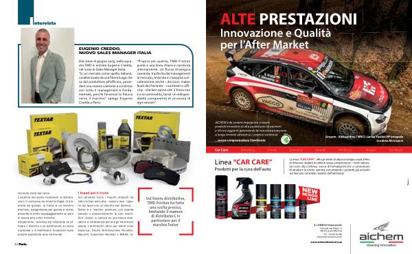 “ Proprio per questo, TMD Friction punta a una linea chiara e condivisa internamente. Un flusso strategico coerente, trasferito dal management al mercato, tenendo in massima considerazione anche i decision maker finali del frenante- ricambisti e officine- che ben sanno che il freno non è una commodity, bensì un indispendabile componente di sicurezza di ogni veicolo”. seconda metà dell’ anno. L’ azienda sta anche valutando la distribuzione in esclusiva del marchio Pagid, di proprietà del gruppo. Si tratta di un marchio premium, paragonabile per qualità a Textar, presente in primo equipaggiamento su auto di fascia alta come Porsche. Attualmente l’ azienda sta valutando se affidare il marchio a un distributore su scala nazionale o a distributori focalizzati sulle proprie specifiche aree territoriali.