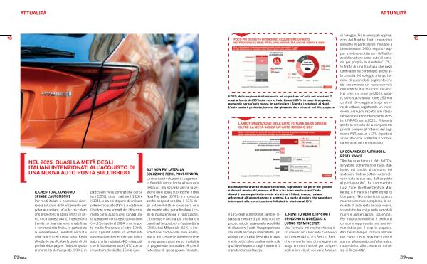 LA DOMANDA DI AUTOMOBILI RESTA VIVACE“ Anche quest’ anno i dati dell’ Osservatorio confermano il ruolo strategico del credito al consumo nel sostenere l’ intero settore automotive in tutte le sue fasi, dall’ acquisto al post-vendita”, ha commentato Luigi Pace, Direttore Centrale Marketing e Financial Partnership di Compass,“ Nonostante un quadro macroeconomico complesso, la domanda di auto resta ancora vivace, soprattutto tra chi guarda a modelli nuovi e alimentazioni sostenibili. Per molti automobilisti, il credito al consumo rappresenta una leva irrinunciabile per il proprio acquisto. Allo stesso tempo, formule innovative come il Buy Now Pay Later si stanno affermando nell’ after-sales, rispondendo alla crescente richiesta di flessibilità”.